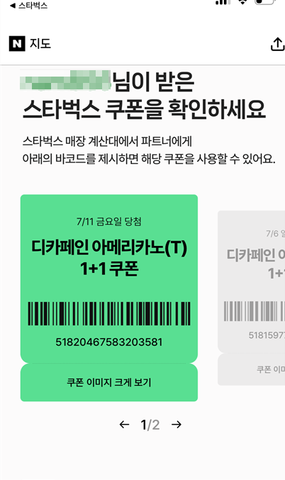 이번 네이버 지도 스타벅스 1+1 쿠폰 이벤트,
