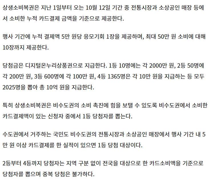 2025 상생소비복권 8월 1일 ~ 10월 12일동안